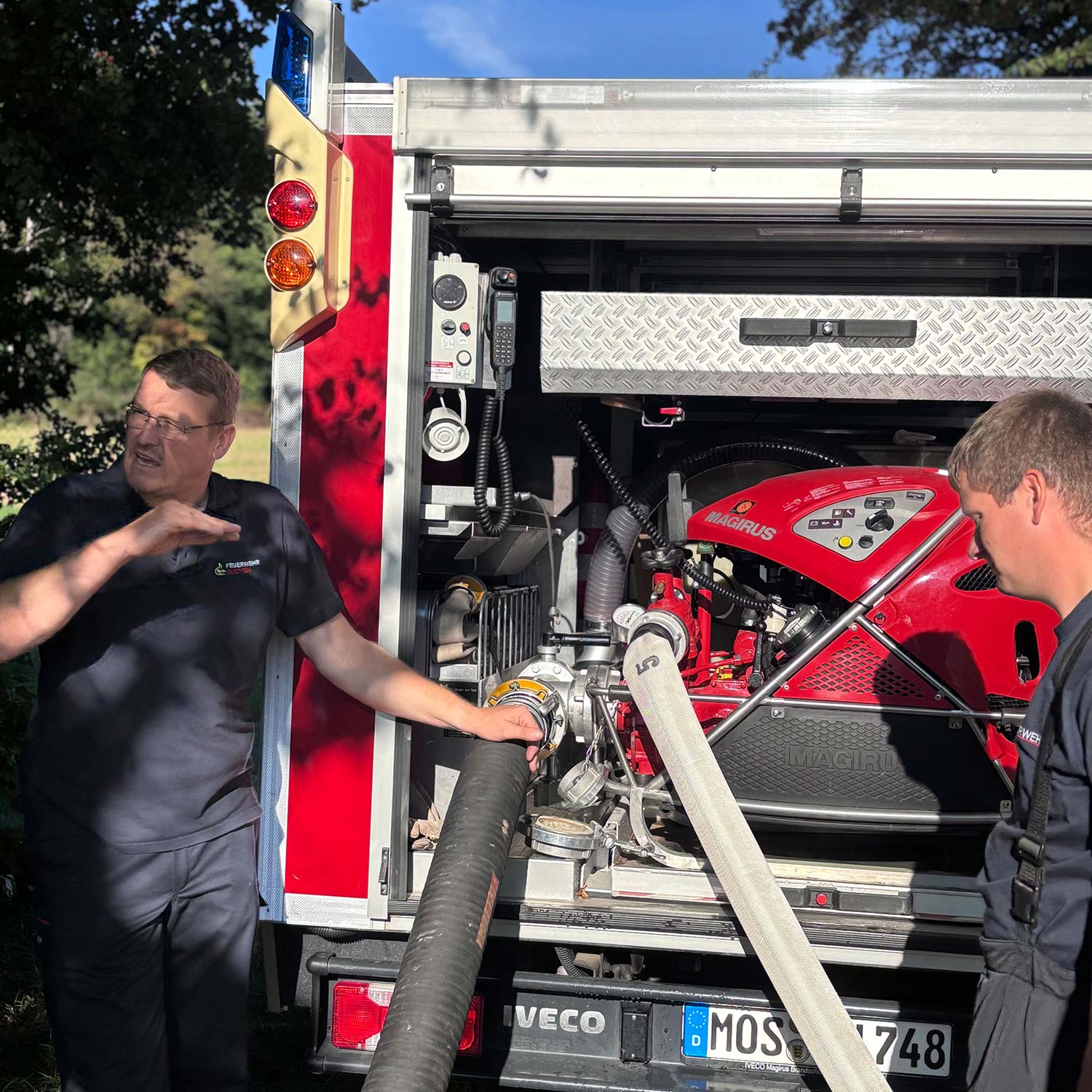 Bei dem 35 Stunden dauernden Maschinistenlehrgang lernten 17 Mitglieder der Feuerwehren aus Buchen, Mudau, Mosbach, Schefflenz und Seckach die Aufgaben eines Maschinisten kennen. Zu den Lernzielen der Ausbildung gehören u.a. Rechtsgrundlagen, Wissenswertes rund um Löschfahrzeuge und Motorenkunde. Einen großen Teil des Lehrgangs nehmen die Übungen im Umgang mit Feuerlöschkreiselpumpen und der Betrieb anderer Pumpen sowie die Wasserförderung ein.