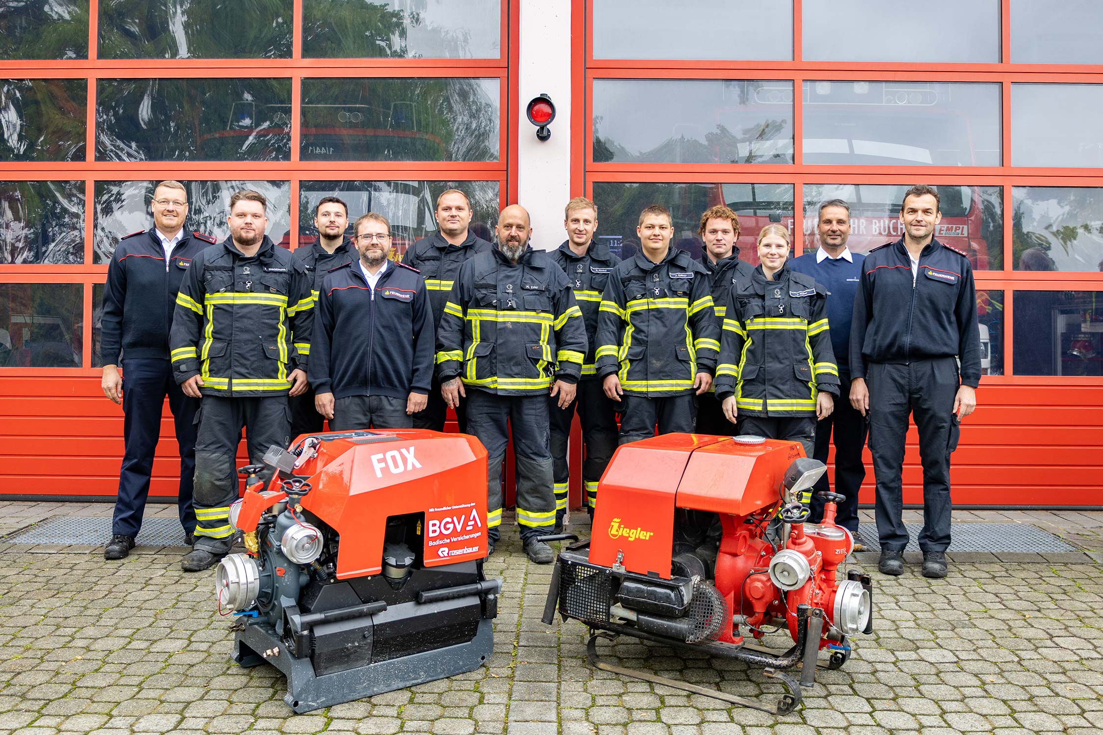 Lehrgangsleiter Arno Noe bedankte sich bei den Teilnehmern und seinen Mitausbildern Mathias Wegner, Christian Müller und Ralf Schäfer für die investierte Zeit. Der stellv. Kreisbrandmeister Peter Schmitt freute sich, dass alle Teilnehmer den Lehrgang bestanden haben und dass der Lehrgang so stressfrei ablief. Beide forderten die Teilnehmer auf, mit den Pumpen zu üben und Erfahrung zu sammeln.