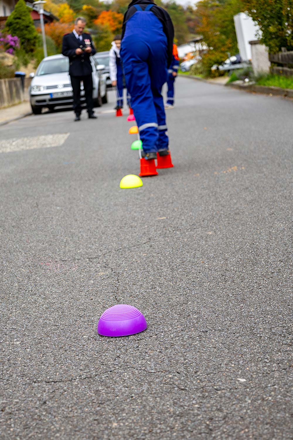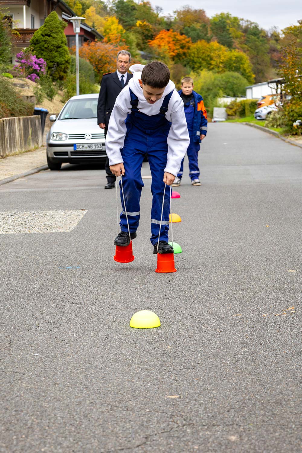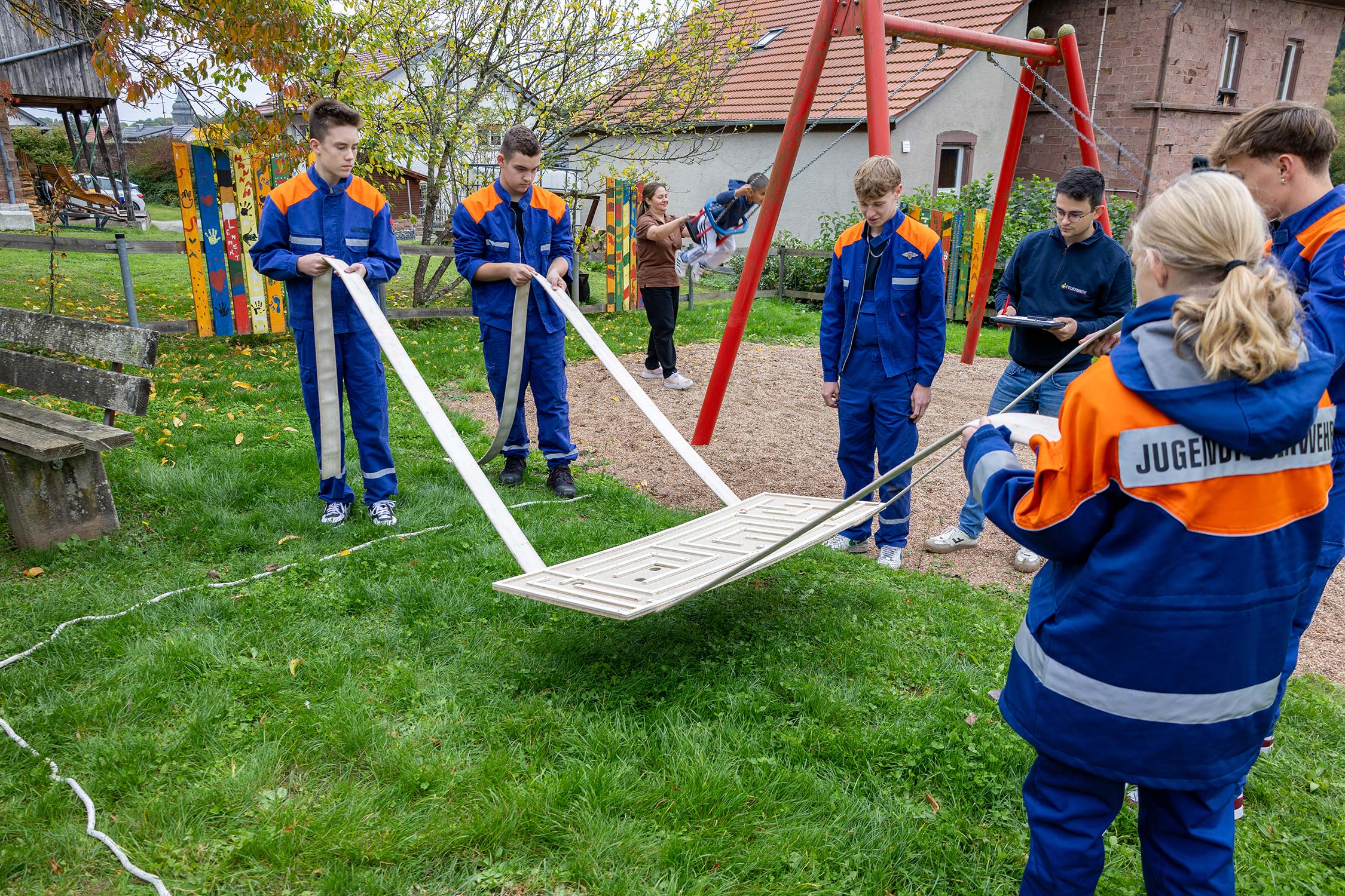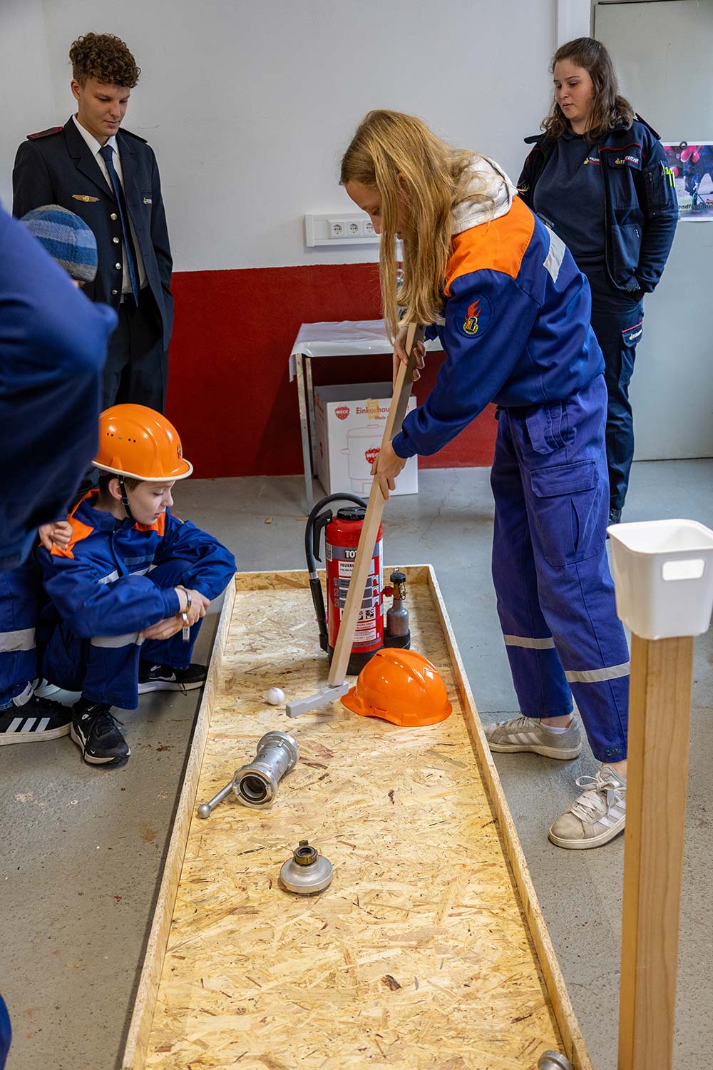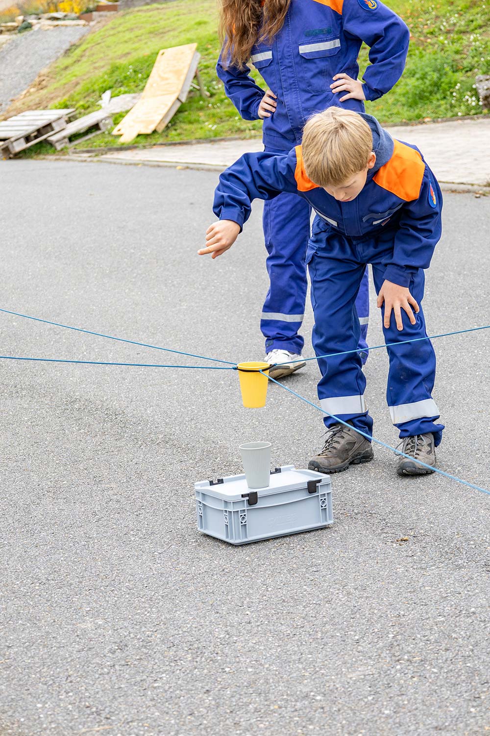 Im Rahmen des Weinfestes zum 85. Gründungsjubiläum der heutigen Feuerwehr-Abteilung Hollerbach trafen sich die Jugendgruppen am Sonntag Nachmittag. Die sechs Spielstationen waren von den Jugendgruppenleitern vorbereitet und betreut worden. Die Spielstationen waren das Team-Labyrinth der Jugendgruppe (JG) Hettingen, Becher-Transport (JG Buchen), Tastspiel (JG Götzingen), Minigolf (JG Hettigenbeuern), Stelzenlauf (JG Hainstadt) und Wassertransport mit einem Schubkarren.