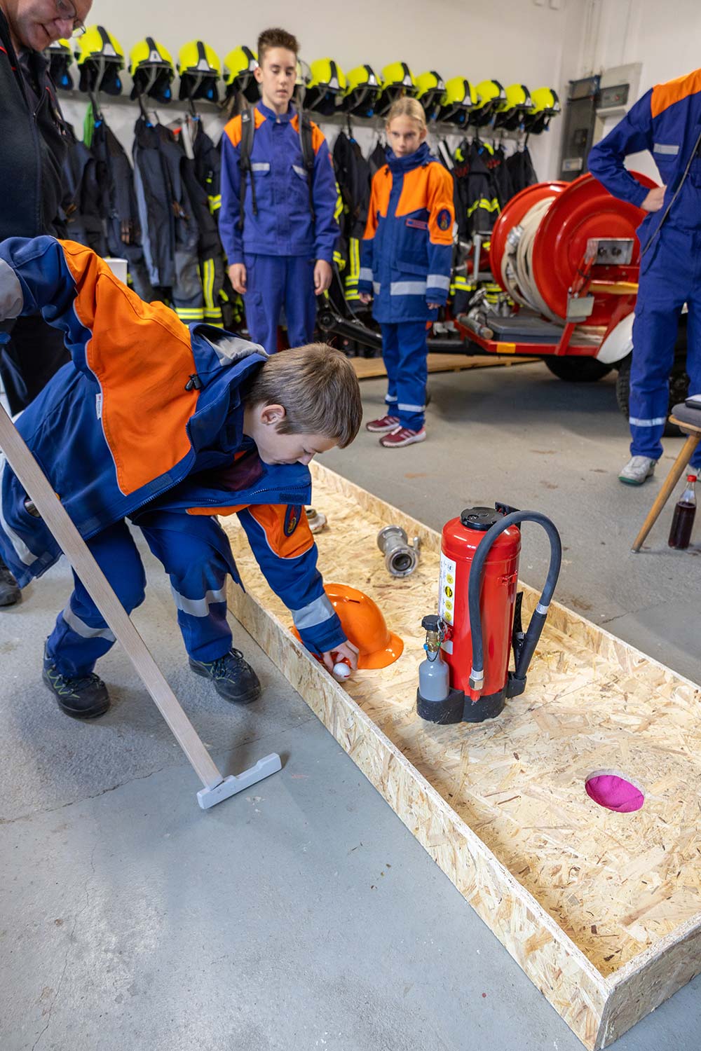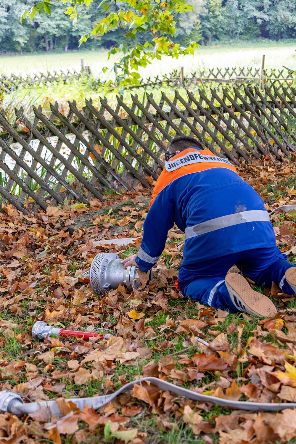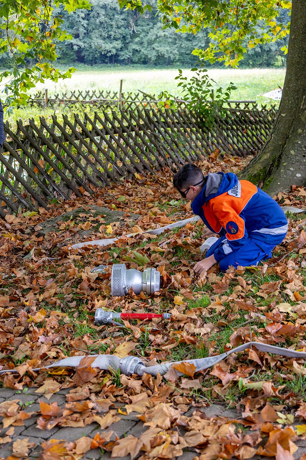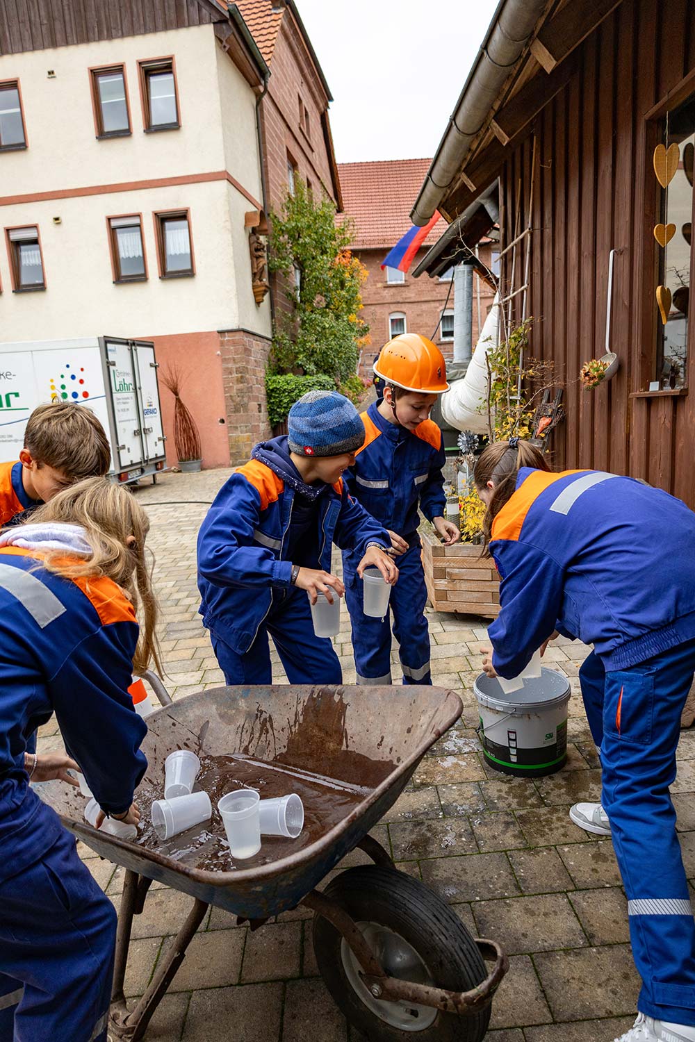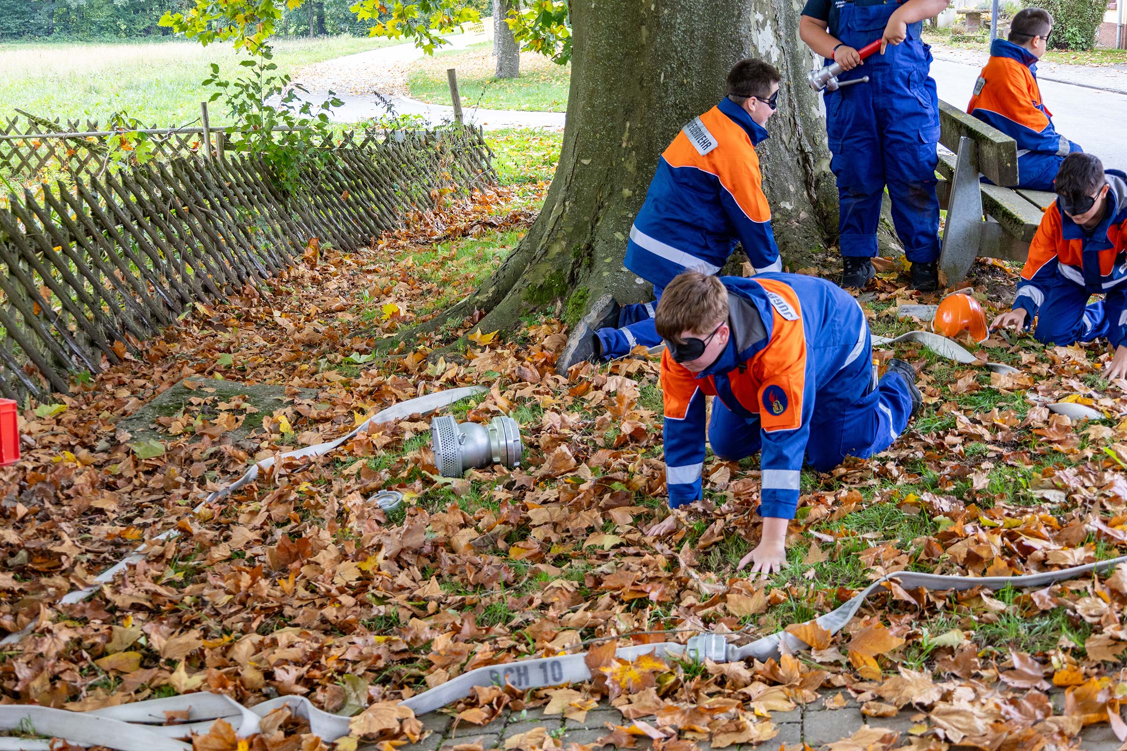 Im Rahmen des Weinfestes zum 85. Gründungsjubiläum der heutigen Feuerwehr-Abteilung Hollerbach trafen sich die Jugendgruppen am Sonntag Nachmittag. Die sechs Spielstationen waren von den Jugendgruppenleitern vorbereitet und betreut worden. Die Spielstationen waren das Team-Labyrinth der Jugendgruppe (JG) Hettingen, Becher-Transport (JG Buchen), Tastspiel (JG Götzingen), Minigolf (JG Hettigenbeuern), Stelzenlauf (JG Hainstadt) und Wassertransport mit einem Schubkarren.