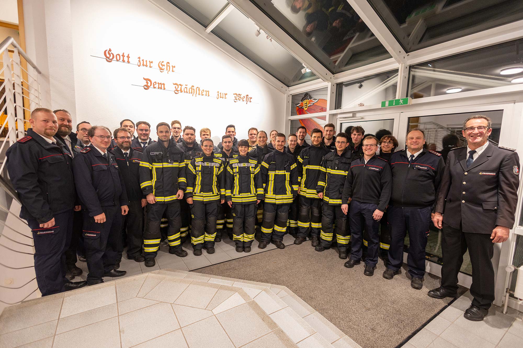 Kommandant Andreas Hollerbach bedankte sich auch im Namen seiner Amtskollgen für die aufgewendete Zeit und freute sich über den entspannten Verlauf des Lehrgangs. Der stellvertretende Kreisbrandmeister Bruno Noe beglückwünschte alle Teilnehmer zur bestandenen Prüfung und gratulierte zu ihrer Leistung und ihrem Engagement.