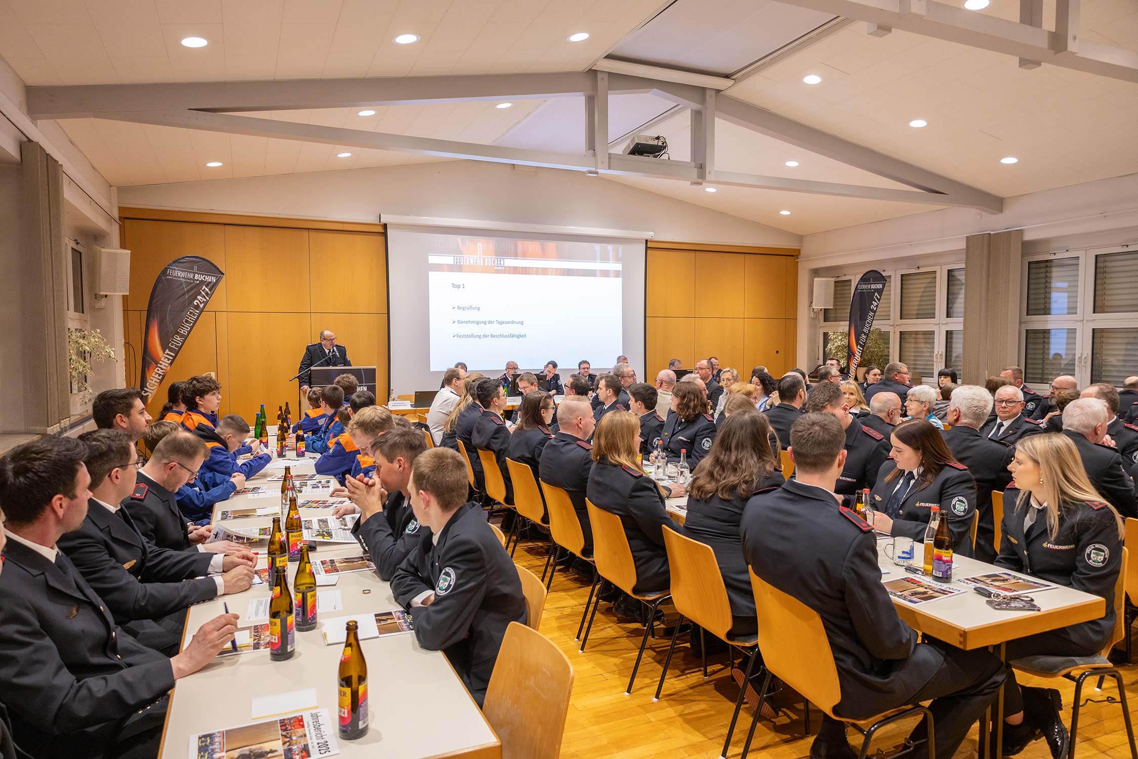 Buchen. Auf ein arbeitsreiches Jahr hat die Freiwillige Feuerwehr Buchen, Abteilung Stadt, bei ihrer 158. Jahreshauptversammlung im Florianssaal der Feuerwache zurückgeblickt. Abteilungskommandant Andreas Hollerbach begrüßte die anwesenden Mitglieder und Gäste und stellte mit 62 von 81 stimmberechtigten Feuerwehrangehörigen die Beschlussfähigkeit der Versammlung fest.