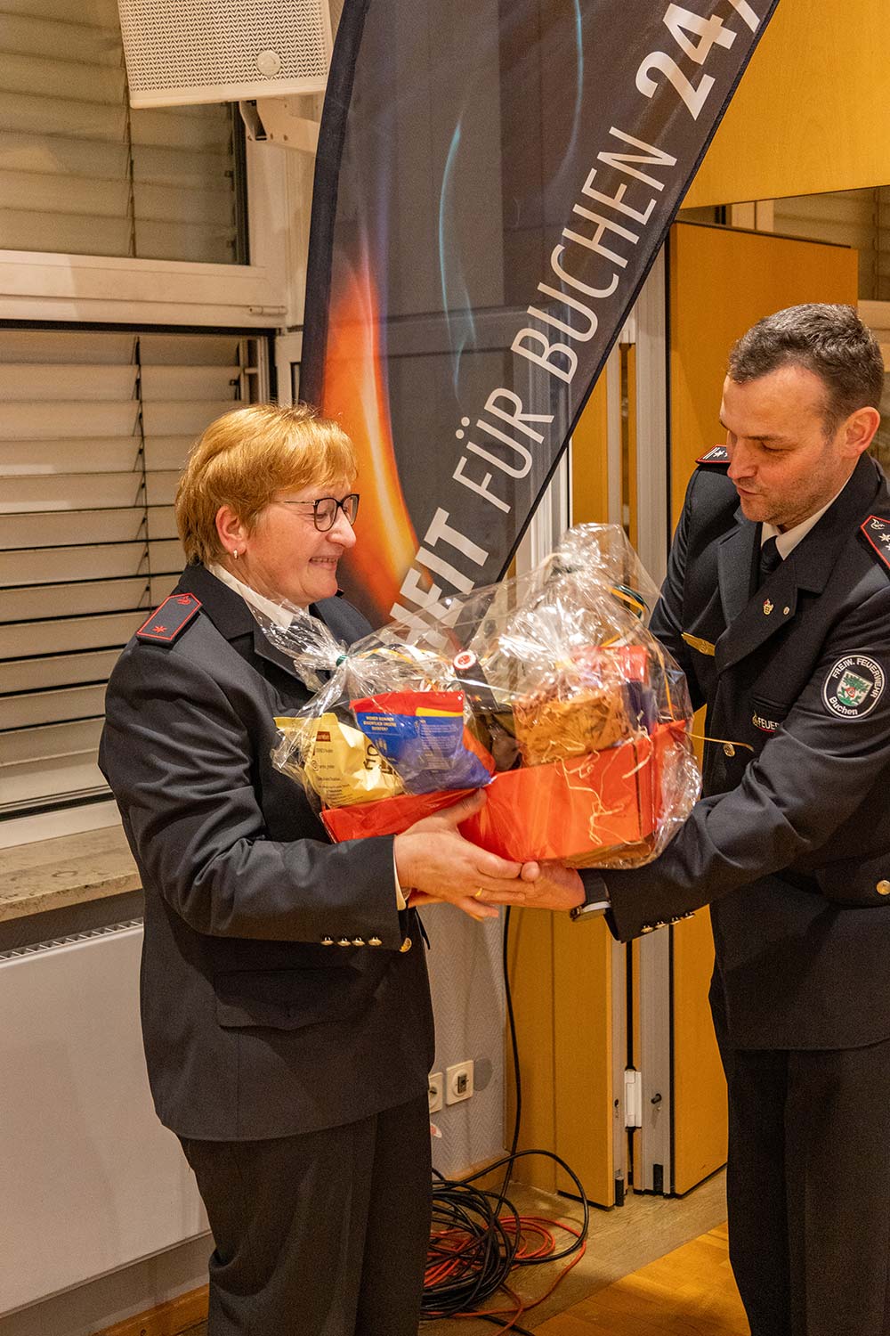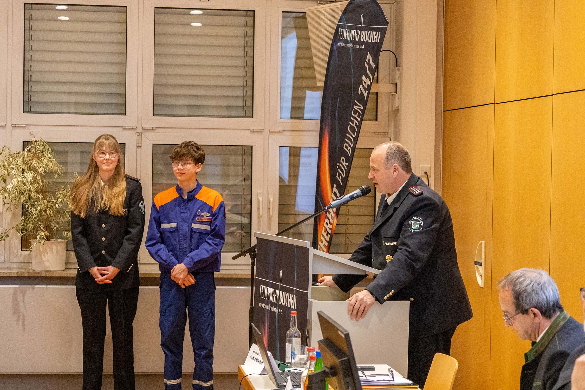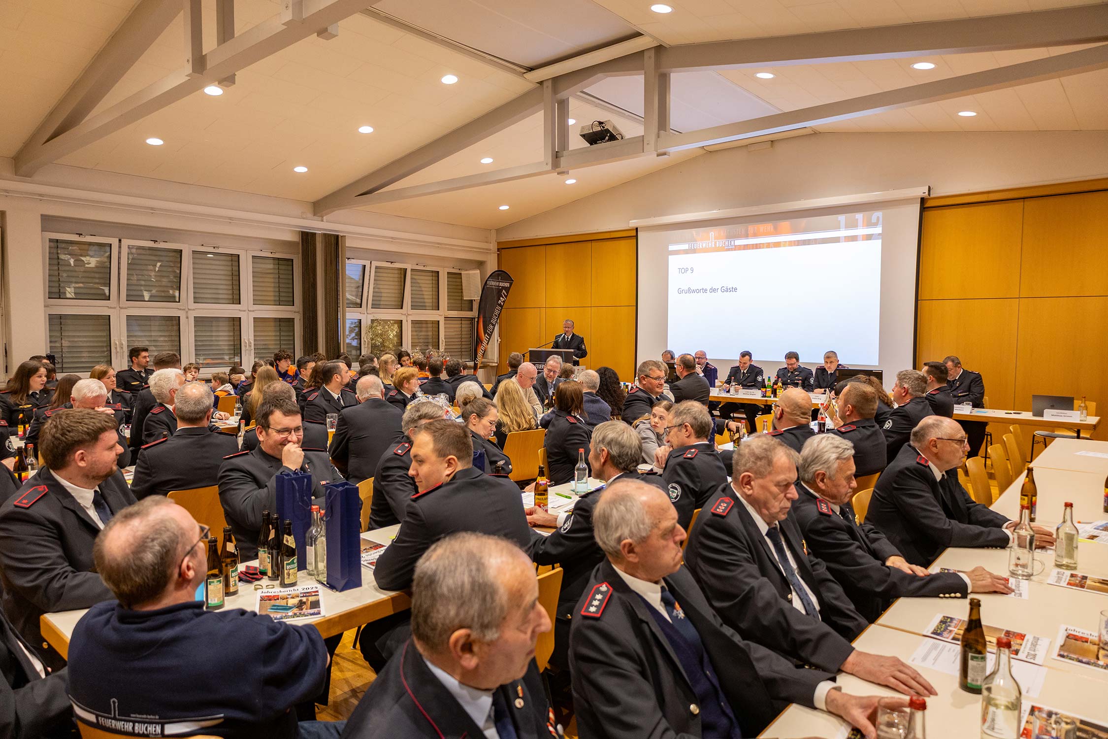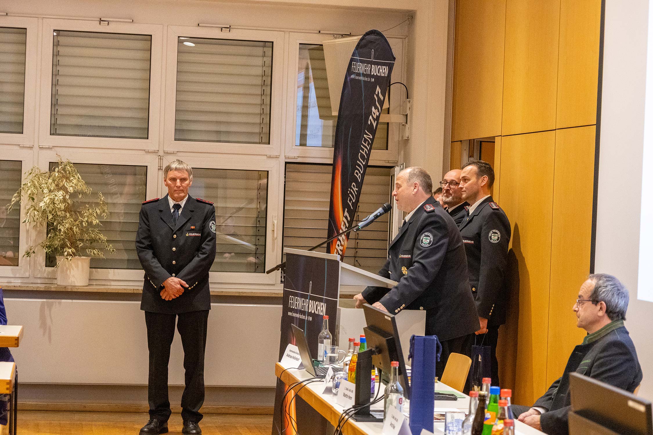 Kreisbrandmeister Jörg Kirschenlohr dankte der Buchener Feuerwehr für ihr Engagement im Landkreis, insbesondere in der Aus- und Weiterbildung. Zudem kündigte er an, dass die Integrierte Leitstelle zum 1. Januar 2027 nach Heilbronn umziehen werde.