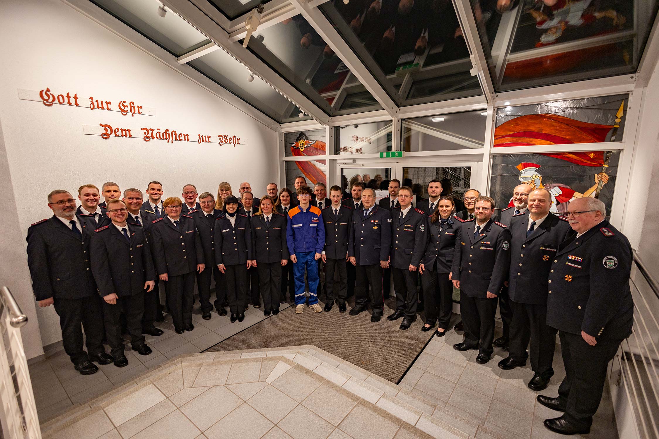 Zu Beginn gedachten die Anwesenden der verstorbenen Mitglieder der Feuerwehr. Besonders erinnerte Hollerbach an Alexander Schüßler, der im vergangenen Jahr verstorben ist. In seinem Jahresbericht ließ Hollerbach das Feuerwehrjahr 2025 Revue passieren.