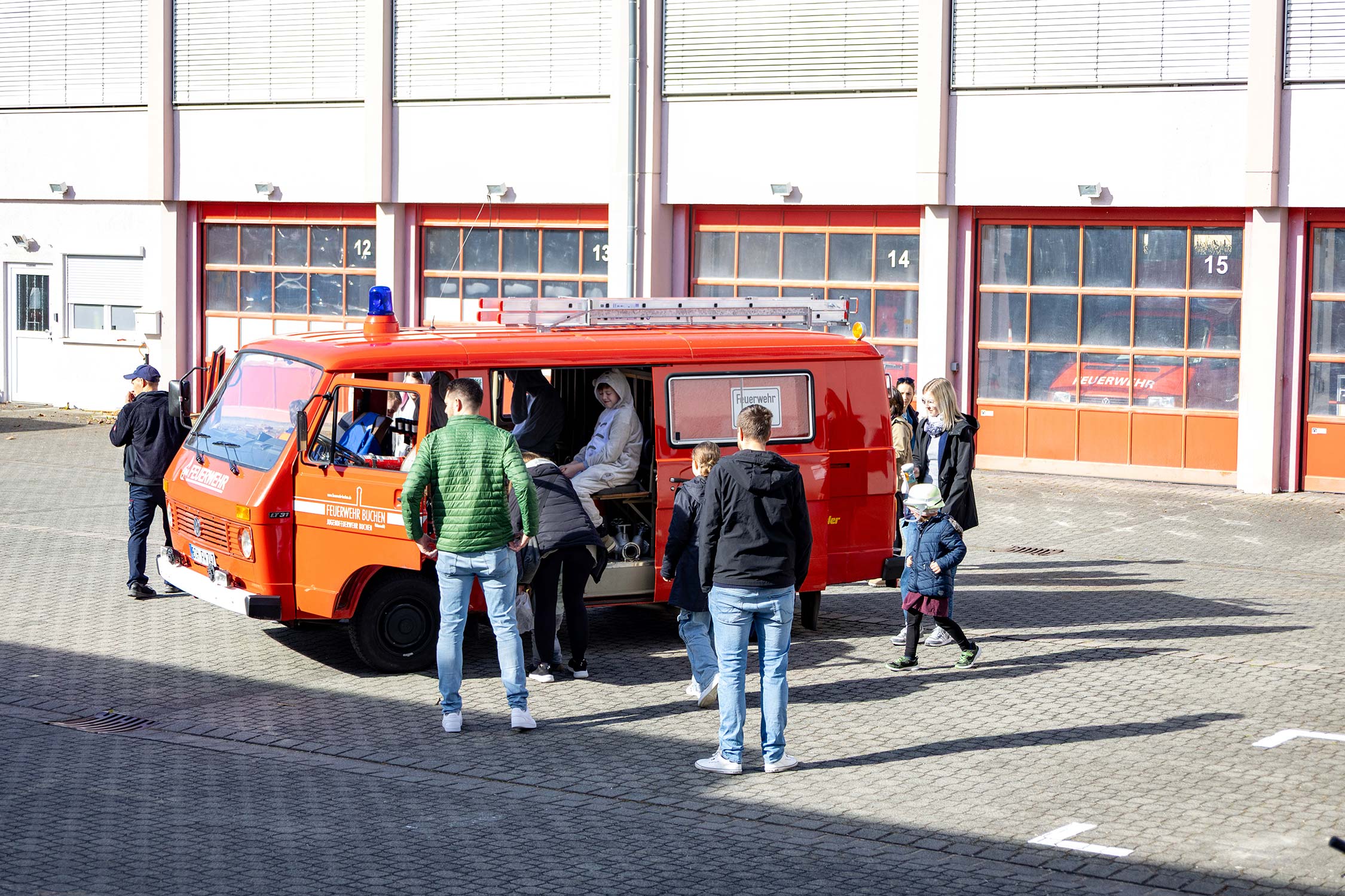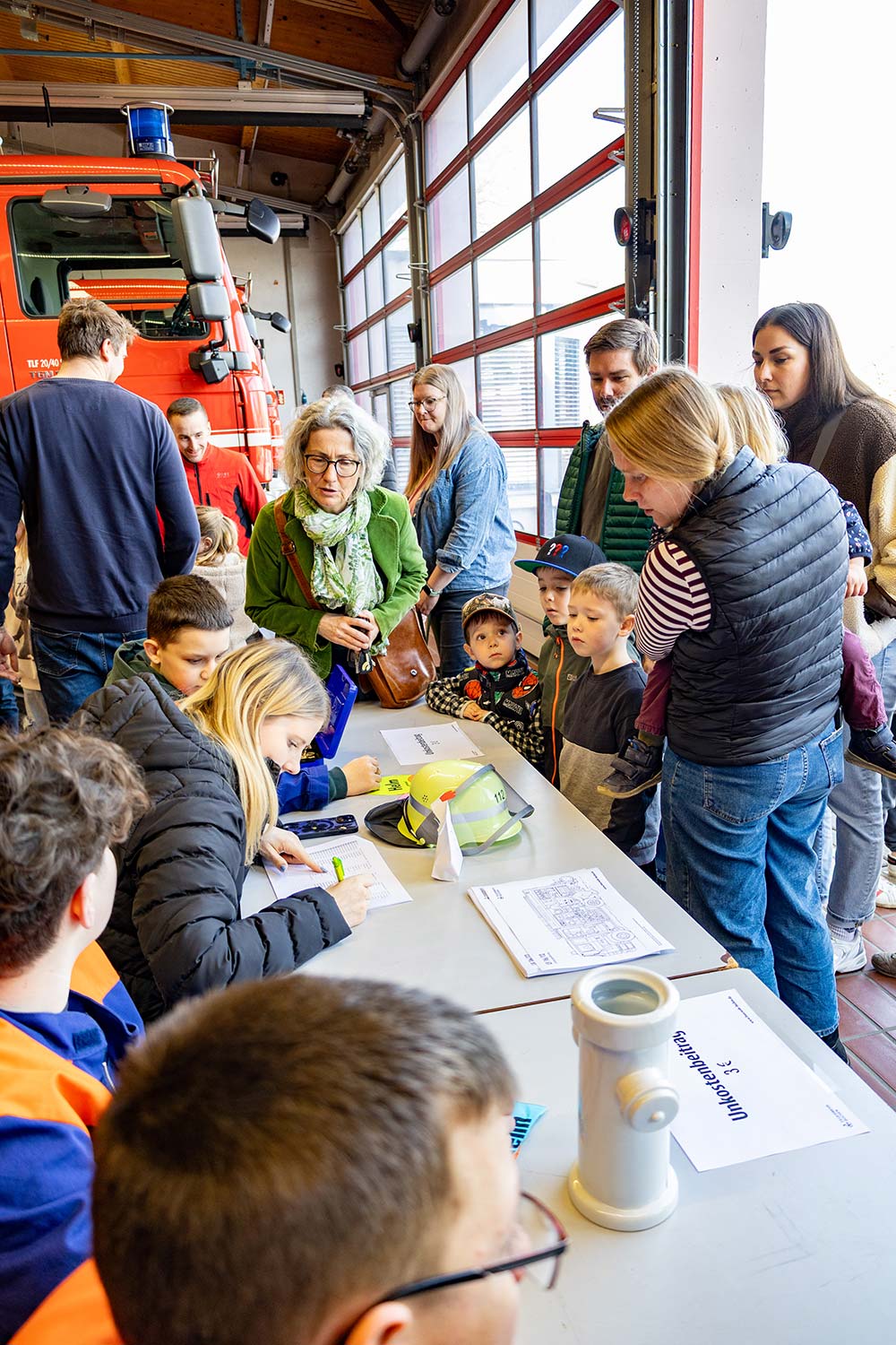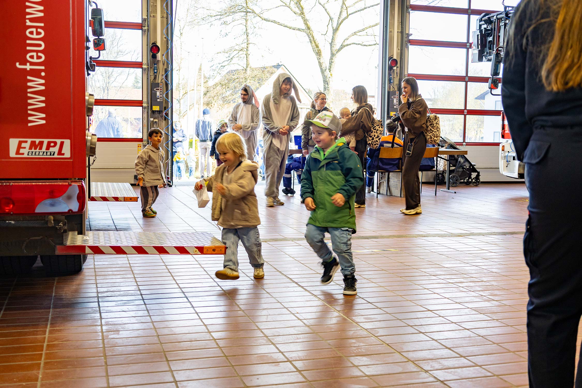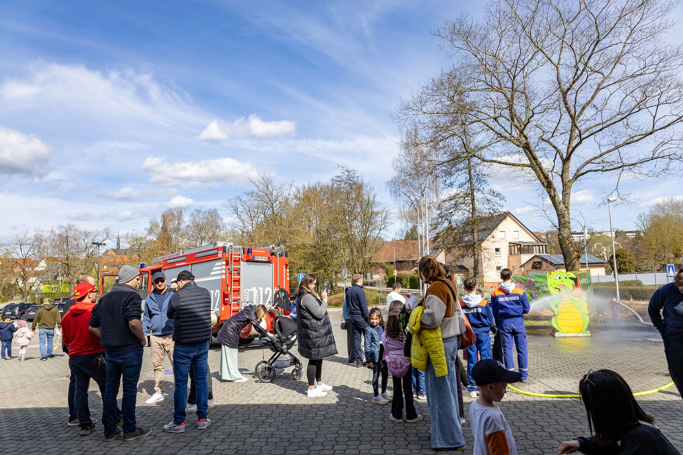 Für leuchtende Augen sorgten auch vier „echte“ Osterhasen, die durch die Räume hoppelten und geduldig für Fotos mit den Kindern posierten. Begeistert erkundeten die kleinen Gäste zudem die Feuerwehrautos. Der Duft von frischen Waffeln und Kuchen machte den gelungenen Vormittag perfekt.