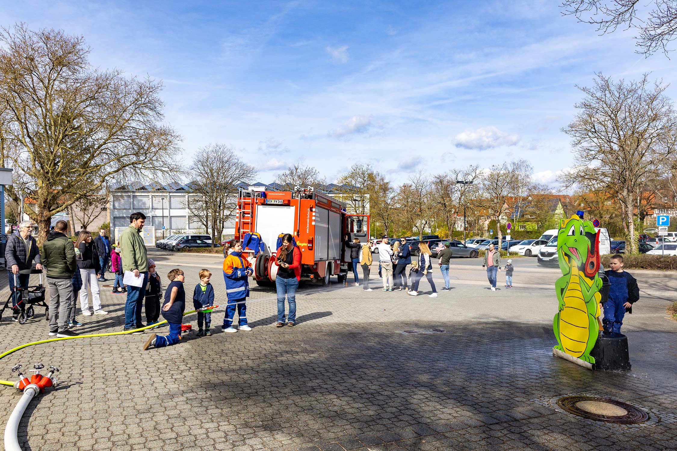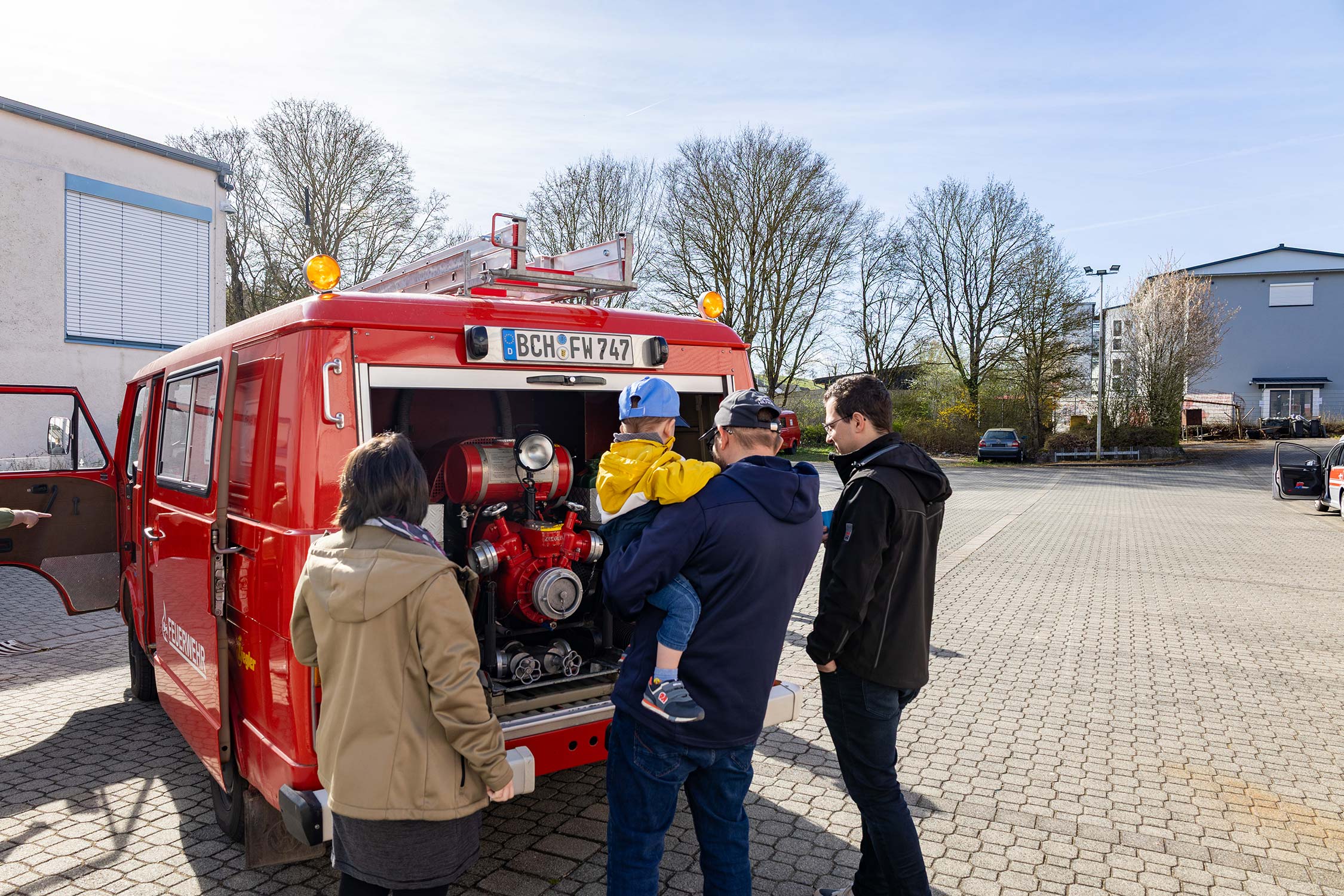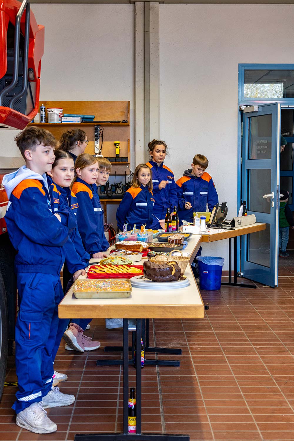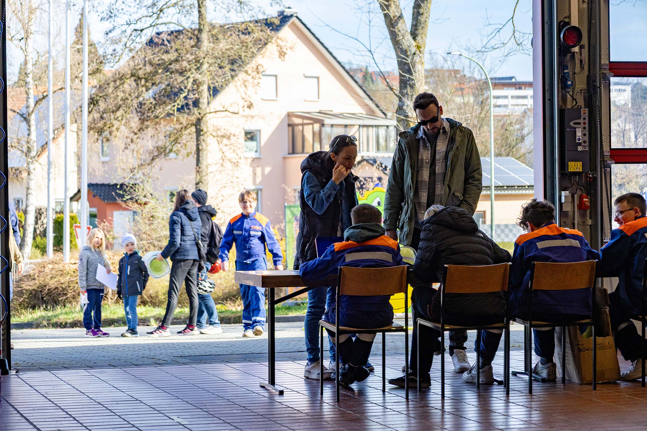 Für leuchtende Augen sorgten auch vier „echte“ Osterhasen, die durch die Räume hoppelten und geduldig für Fotos mit den Kindern posierten. Begeistert erkundeten die kleinen Gäste zudem die Feuerwehrautos. Der Duft von frischen Waffeln und Kuchen machte den gelungenen Vormittag perfekt.