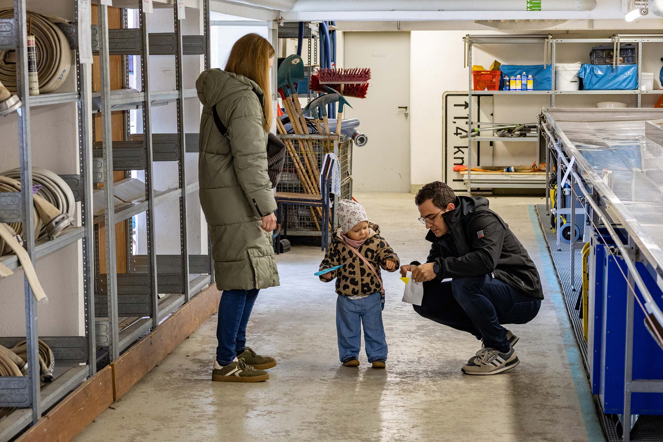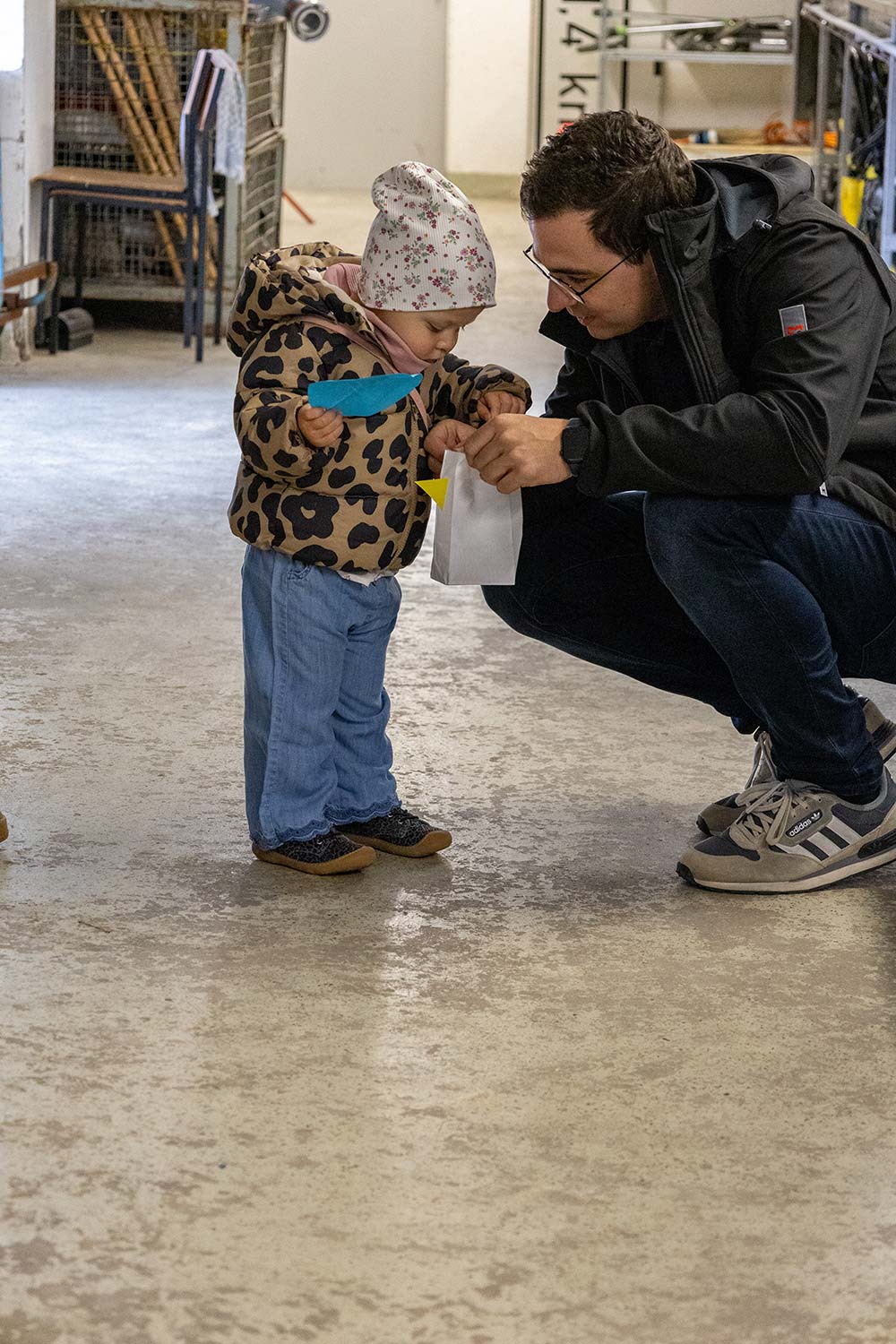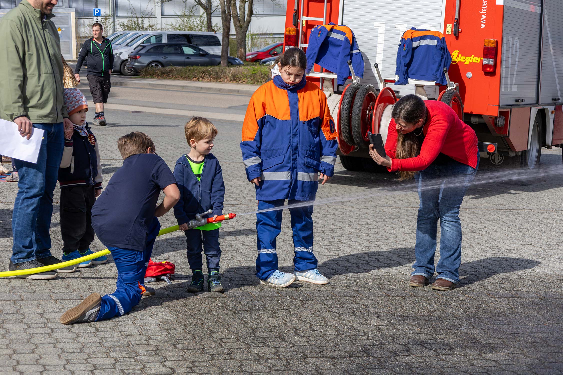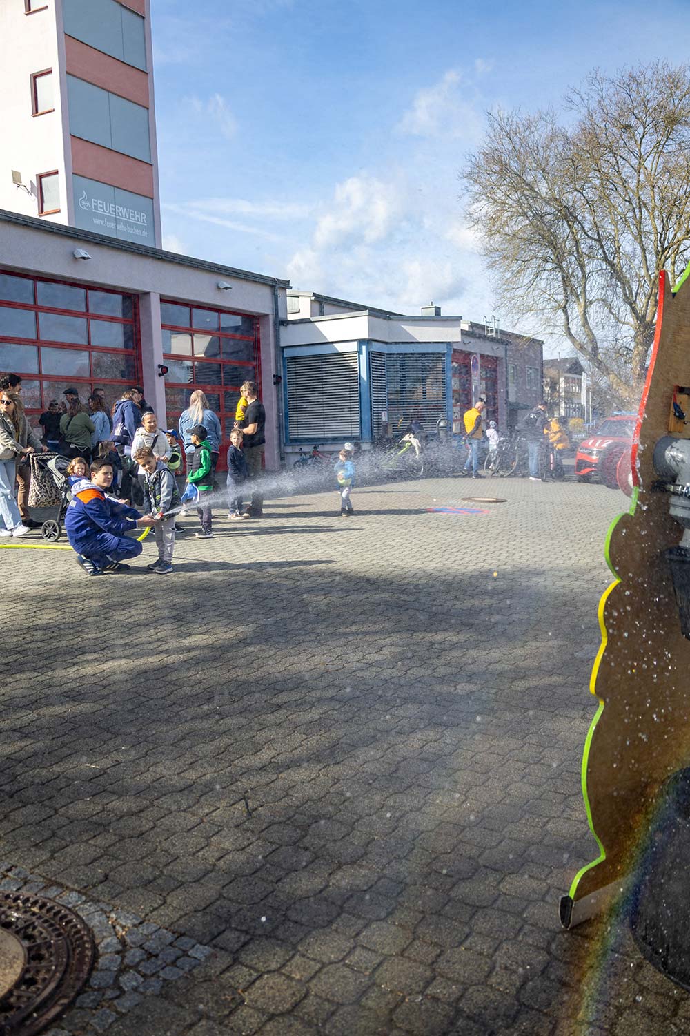 Für leuchtende Augen sorgten auch vier „echte“ Osterhasen, die durch die Räume hoppelten und geduldig für Fotos mit den Kindern posierten. Begeistert erkundeten die kleinen Gäste zudem die Feuerwehrautos. Der Duft von frischen Waffeln und Kuchen machte den gelungenen Vormittag perfekt.