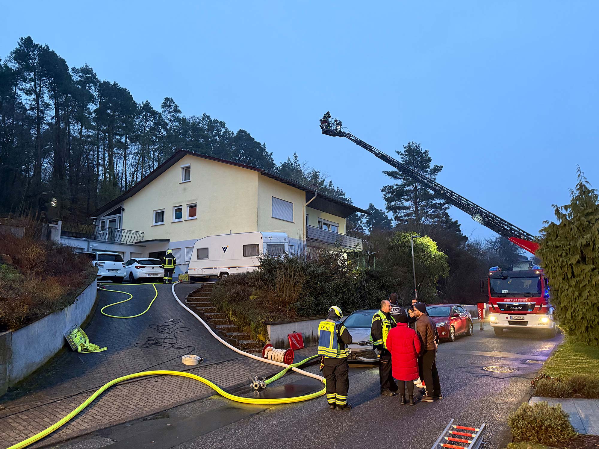 Einsatzkräfte vor Ort: Feuerwehr Buchen mit Abteilungen Hainstadt und Stadt; DRK mit Rettungsdienst, HvO und OrgL; Kreisbrandmeister; Polizei