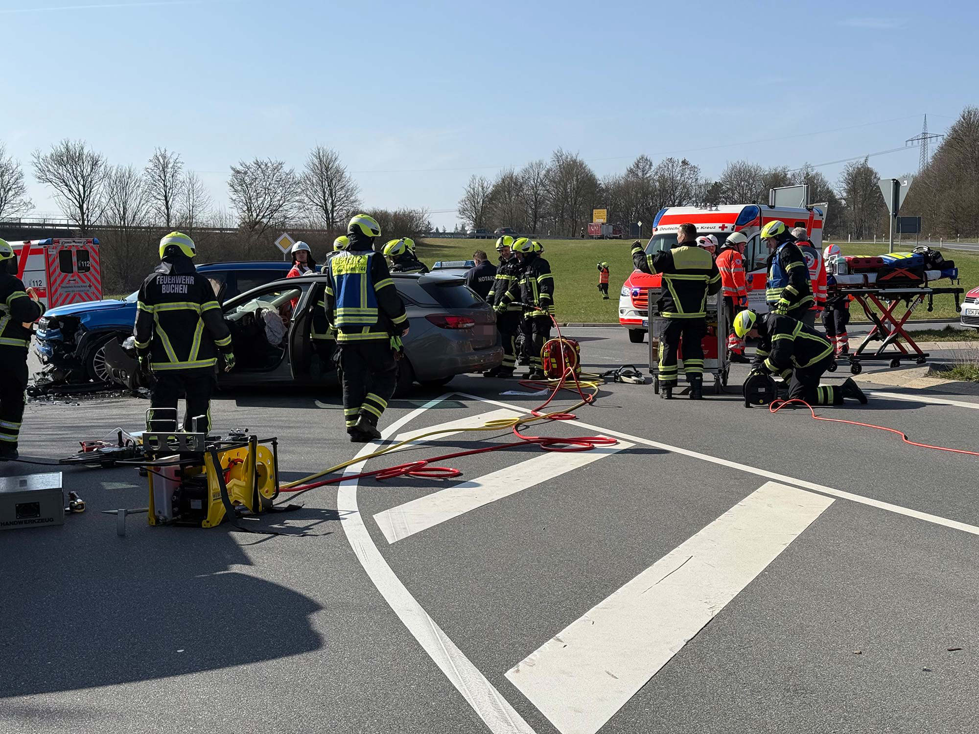 Einsatzkräfte vor Ort: Feuerwehr Buchen mit Abteilungen Stadt, Bödigheim, Waldhausen, Einbach und Eberstadt; Rettungsdienst; HvO; Polizei; stellv. Kreisbrandmeister.