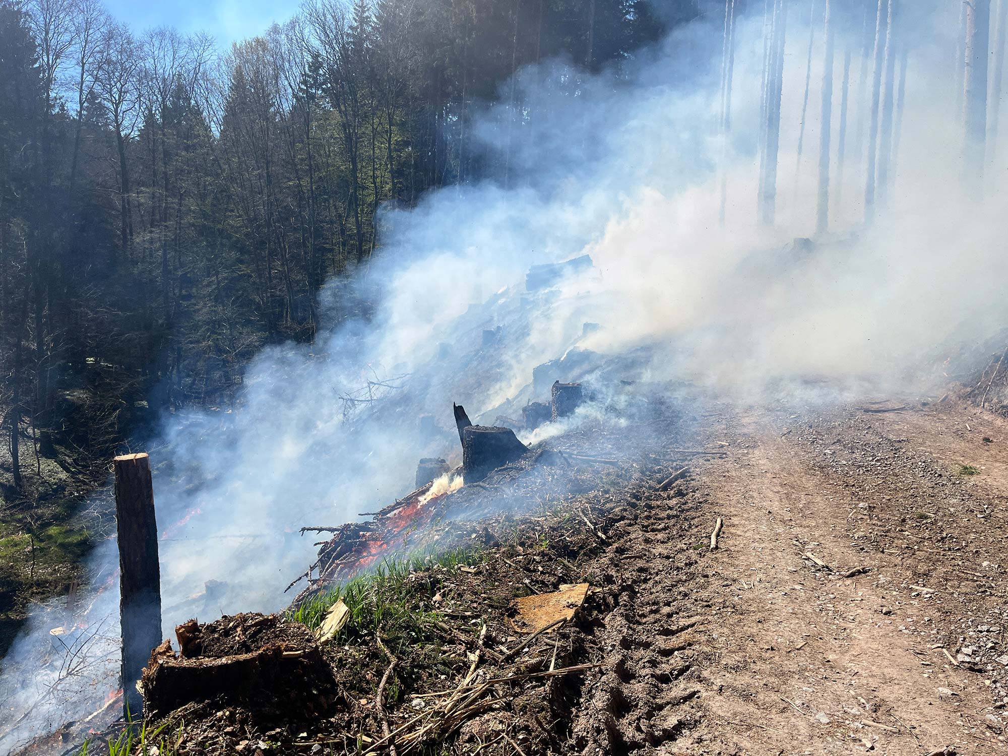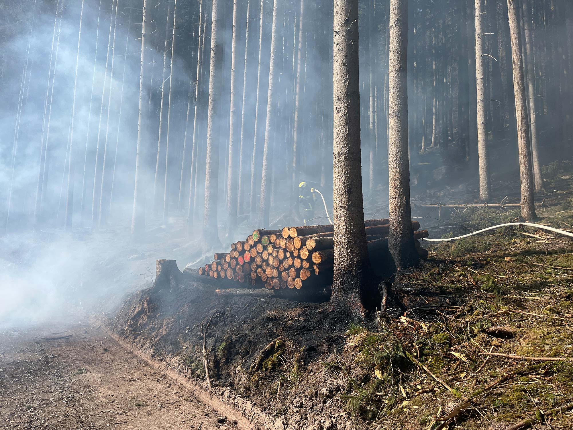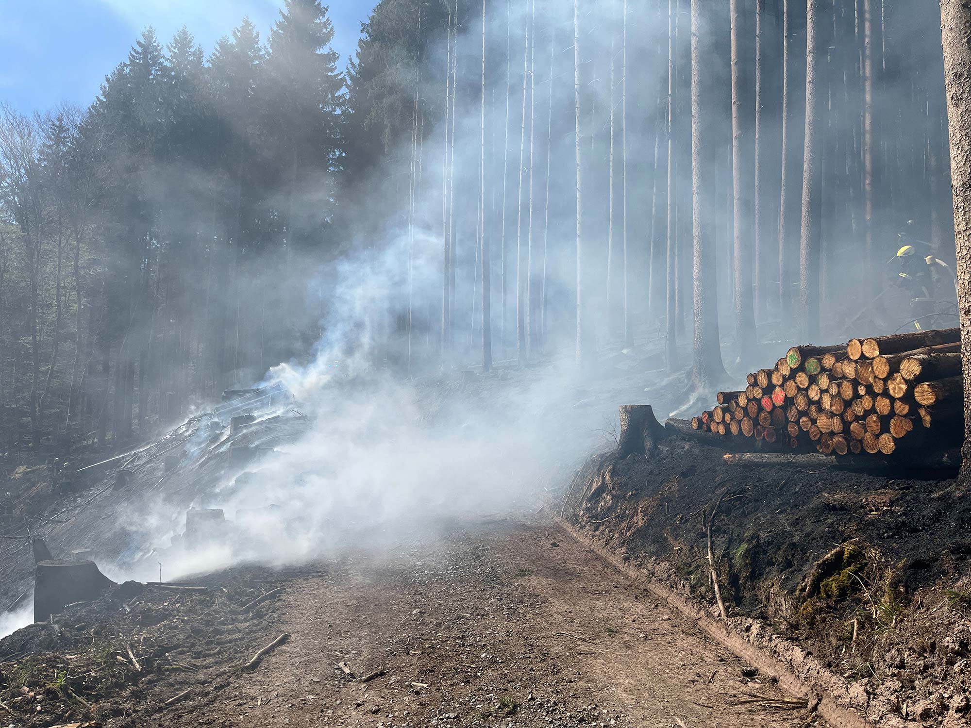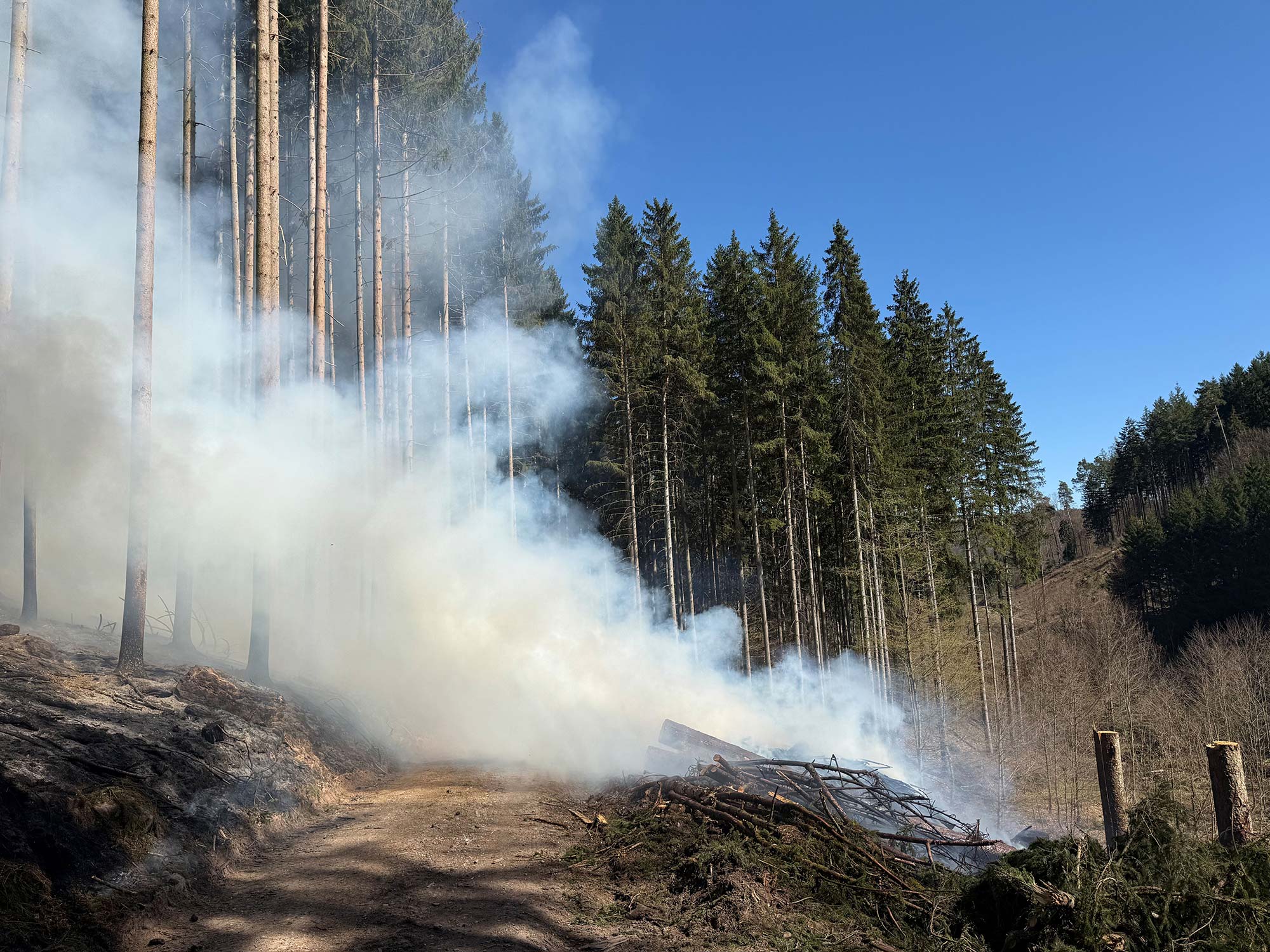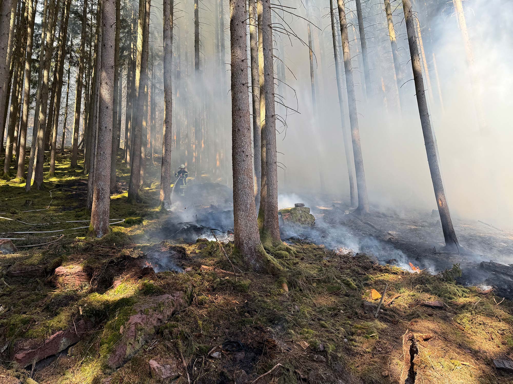 Nachdem die Einsatzkräfte die Brandstelle im Wald ausfindig machen konnten, konnte der Brand an zwei Steilhängen zügig in Gewalt gebracht werden. Die Lage mitten im Wald erschwerte die Löscharbeiten, da der Wassernachschub nur aus dem Steinbächle unterhalb nach oben gepumpt werden konnte. Um Wasser auf den oberhalb gelegenen Hang zu bringen, musste Wasser mit Feuerwehrfahrzeugen im Pendelverkehr aus Steinbach herbei geschafft werden. Nachdem der Brand abgelöscht worden war, transportierte ein Rückefahrzeug die in Mitleidenschaft gezogenen Stämme an den Parkplatz am Stürzenhardter Brückchen wo die Feuerwehr die Stämme nochmals ausgiebig wässerte.