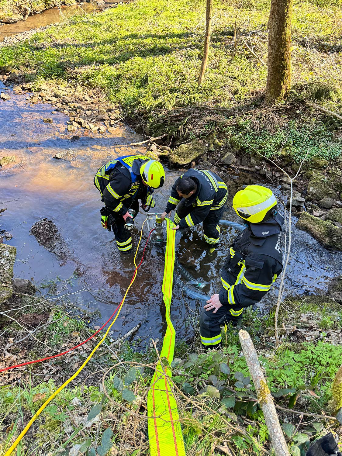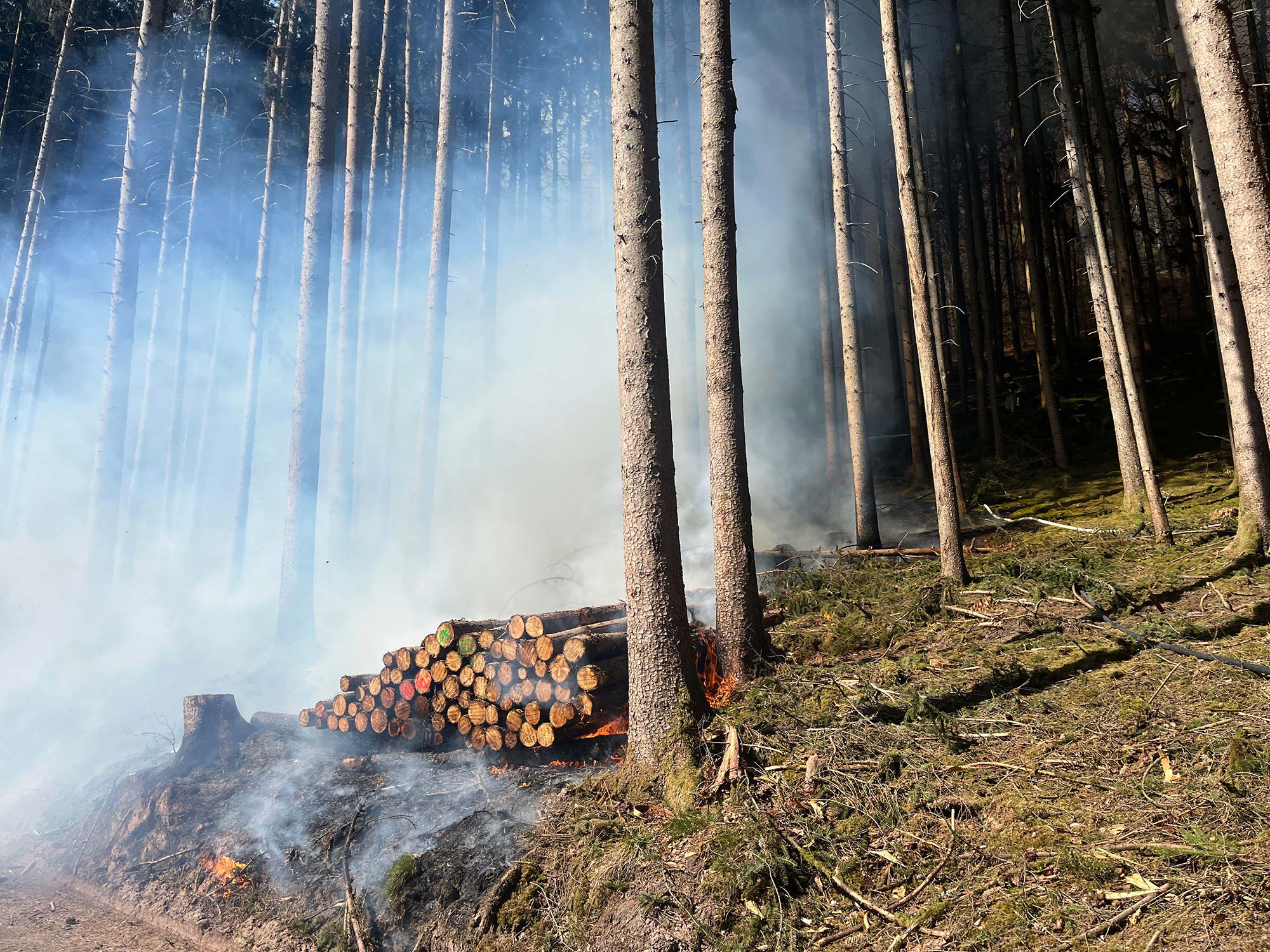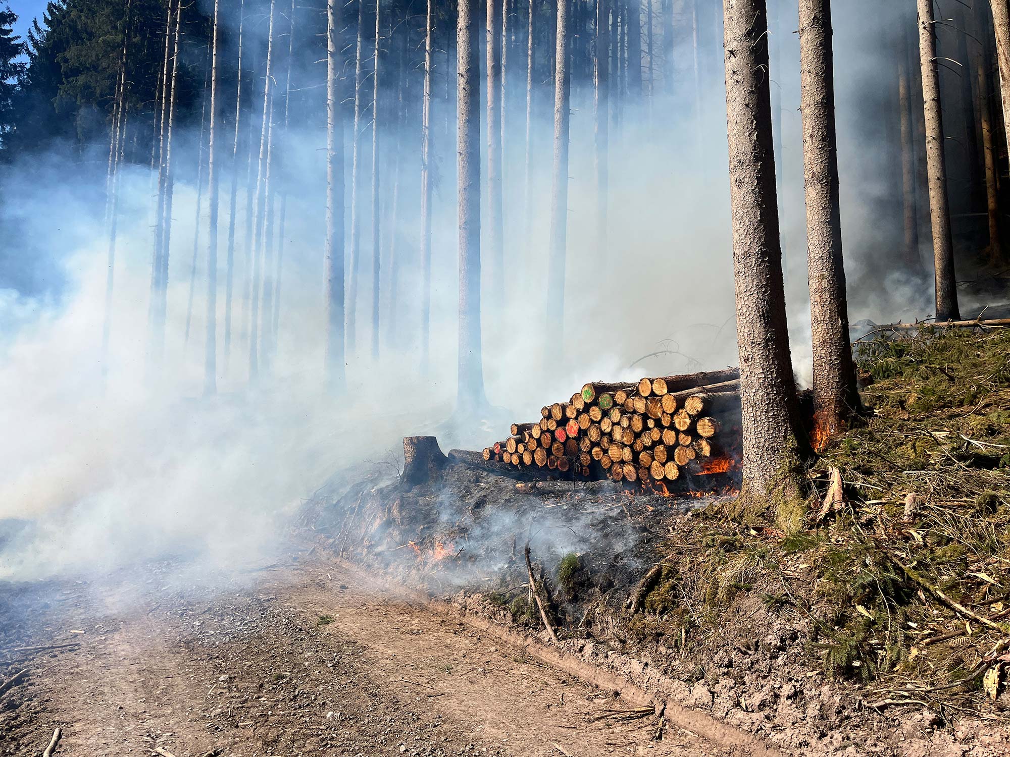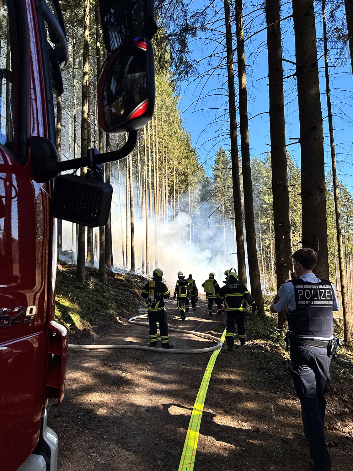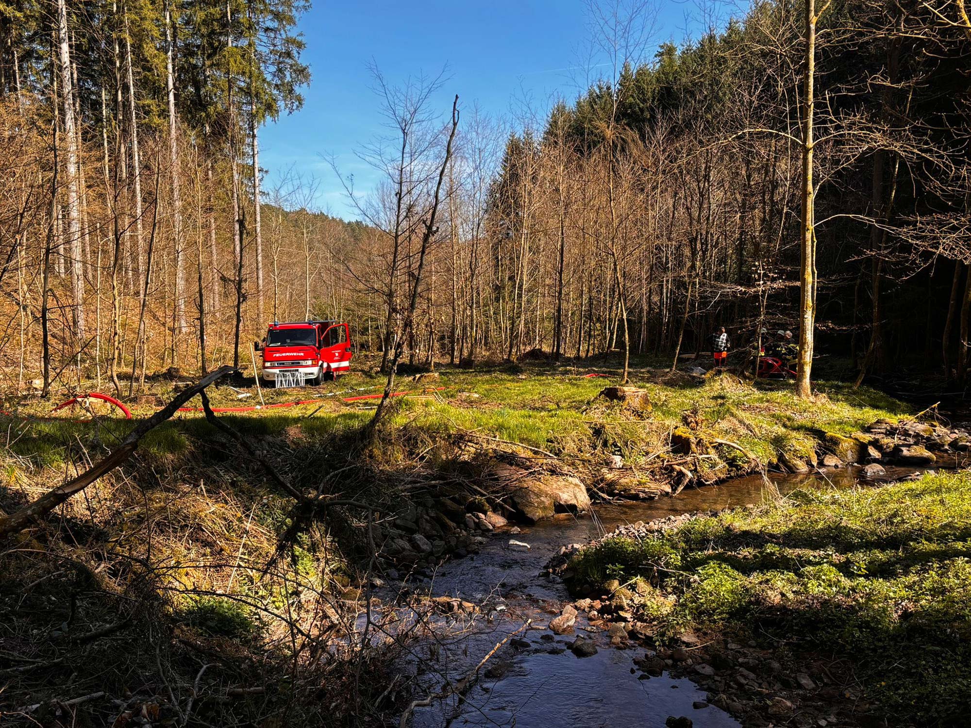 Nachdem die Einsatzkräfte die Brandstelle im Wald ausfindig machen konnten, konnte der Brand an zwei Steilhängen zügig in Gewalt gebracht werden. Die Lage mitten im Wald erschwerte die Löscharbeiten, da der Wassernachschub nur aus dem Steinbächle unterhalb nach oben gepumpt werden konnte. Um Wasser auf den oberhalb gelegenen Hang zu bringen, musste Wasser mit Feuerwehrfahrzeugen im Pendelverkehr aus Steinbach herbei geschafft werden. Nachdem der Brand abgelöscht worden war, transportierte ein Rückefahrzeug die in Mitleidenschaft gezogenen Stämme an den Parkplatz am Stürzenhardter Brückchen wo die Feuerwehr die Stämme nochmals ausgiebig wässerte.